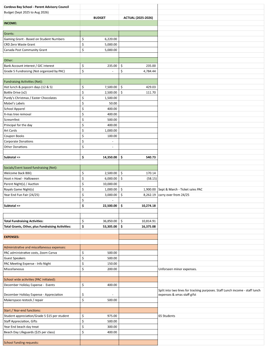CBSPAC Financials 2025-2026 Budget Financials Statements PAC Financial Statements September 2025PAC Financial Statements June 2025PAC Financial Statements May 2025